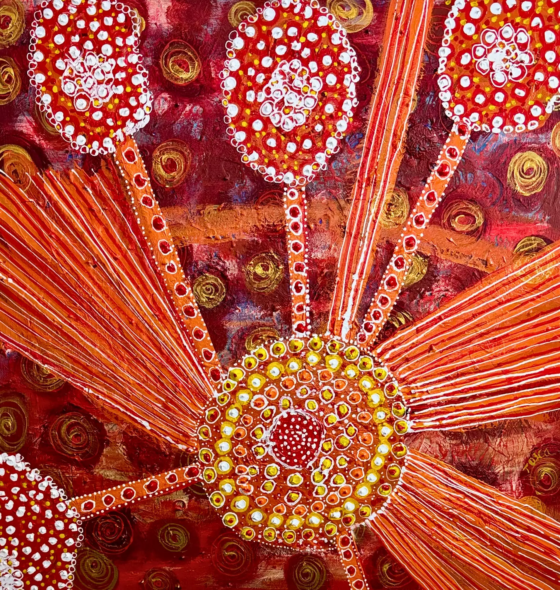 Named from the Scots Gaelic word for “essence,” Brìgh seeks the energy that lies within liminal space. Radiant with reds, oranges, yellows and golds, its pulsating forms and off-centre focus invite viewers to consider how balance, rhythm and intensity reveal the essence of being.