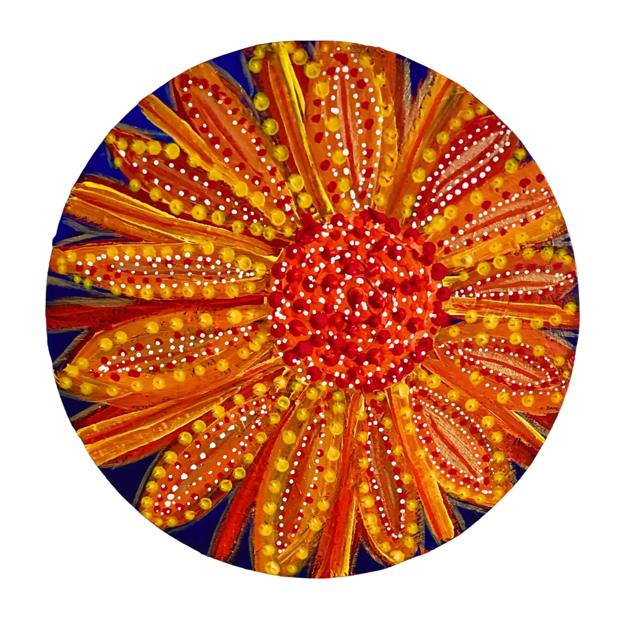 Painted in August 2025, Glimpse explores liminal space through layered colour, rhythm and pulse. Its off-centre focus creates a subtle tension, drawing viewers into shifting patterns that echo the fragile balance of discovery and becoming.